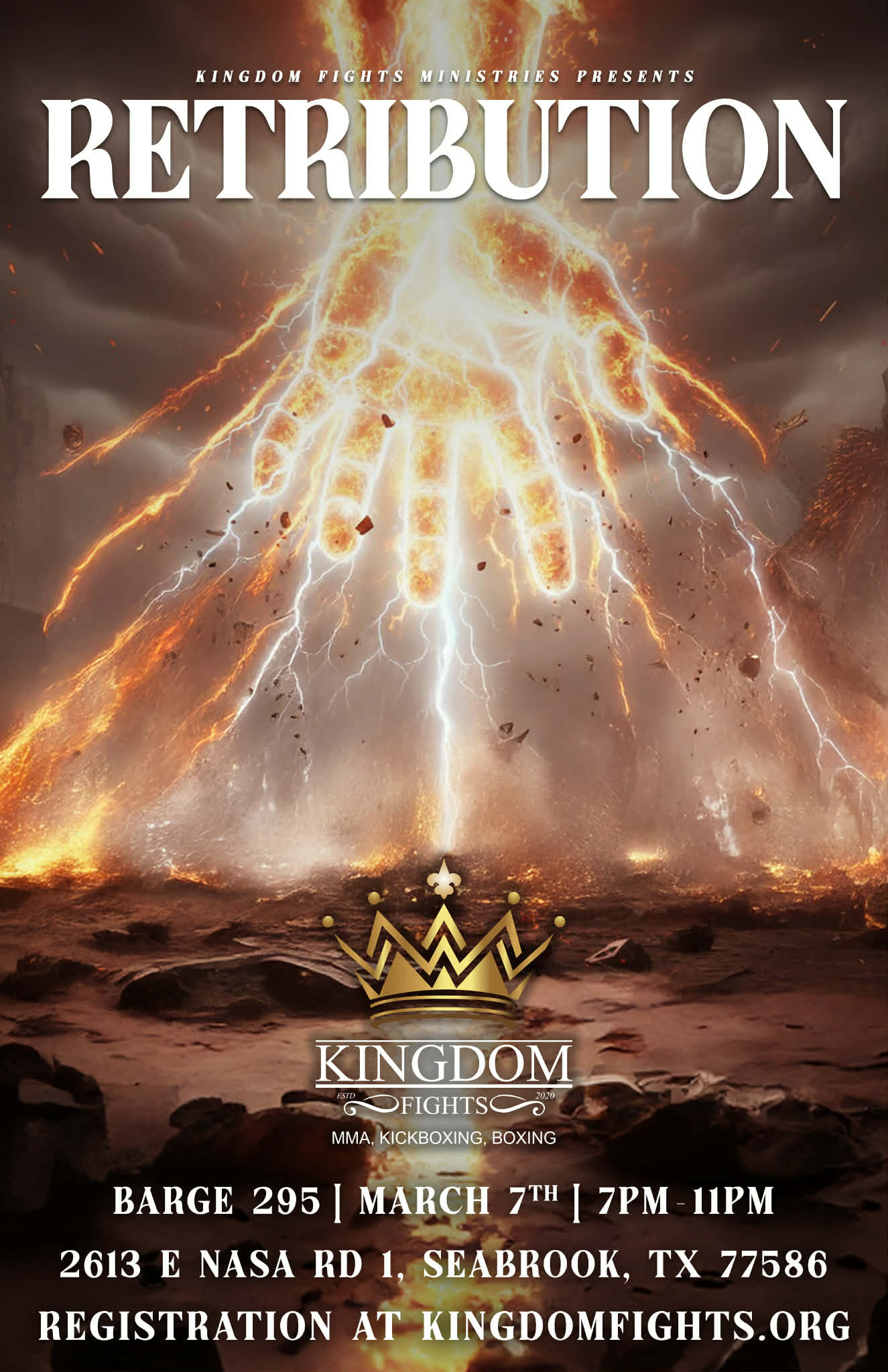 Registration is open to all those who want to help make this a memorable night in Boxing, MMA, Kickboxing, BJJ, and Extreme Pillow Fighting! All while bringing and building the message of the coming KINGDOM with CHRIST as King!!!