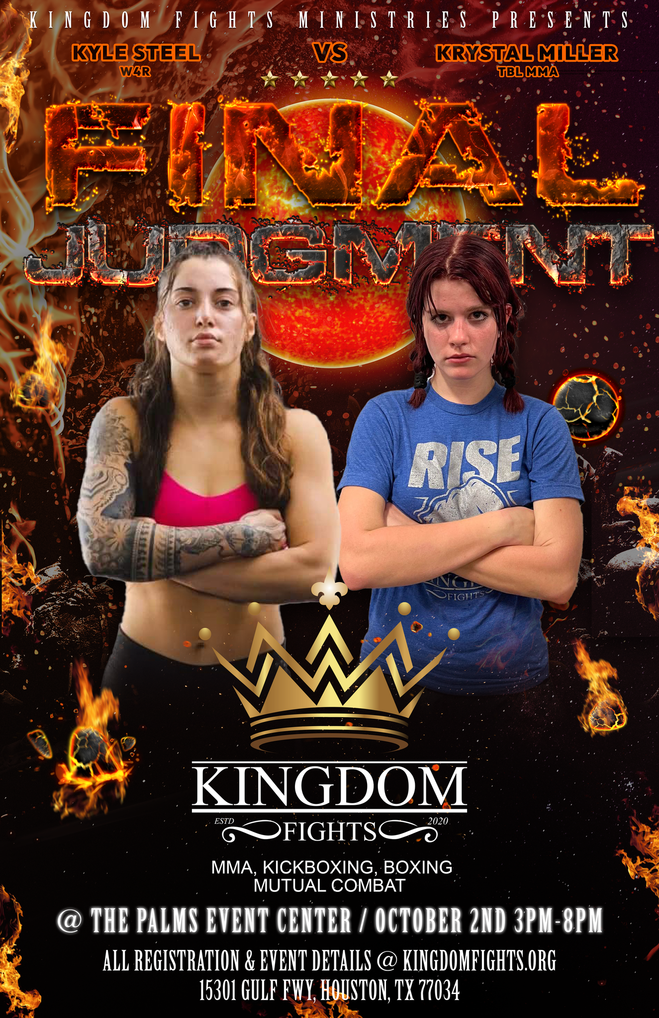 At this heroic event, we will be showcasing some of Houston and Texas’s top combat artists in MMA, Boxing, and Kickboxing while bringing Kingdom awareness of the ever-accelerated, fastly approaching heavenly Kingdom at the Lovely Palms Event Center on Highway 45 South. Don’t miss out!!!